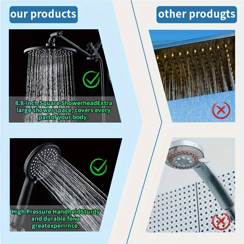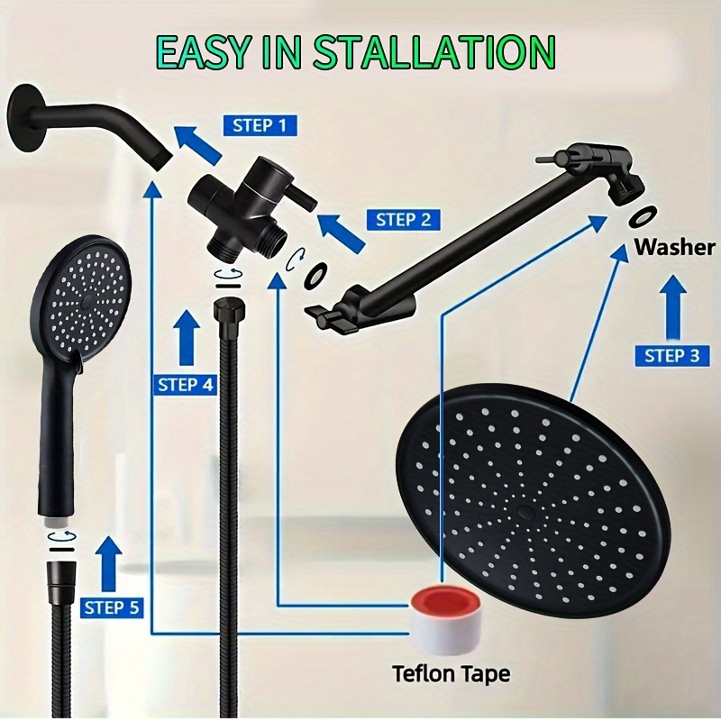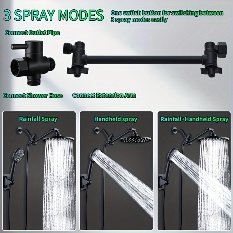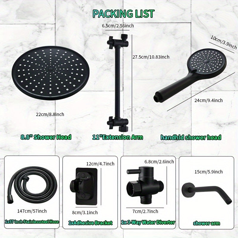 Luxury 10-Inch Rainfall Shower System with Handheld Spray - High Pressure, Adjustable Settings & Extension Arm, Leakproof Design, Easy Install Wall Mount Kit