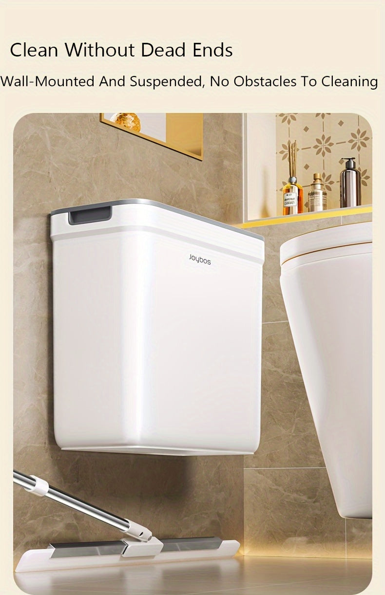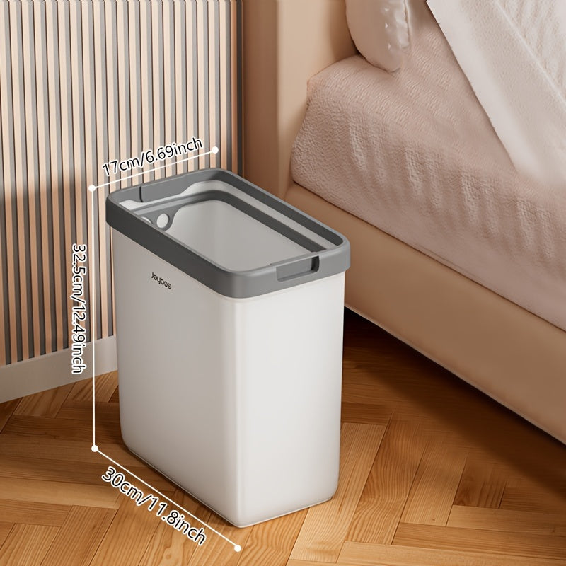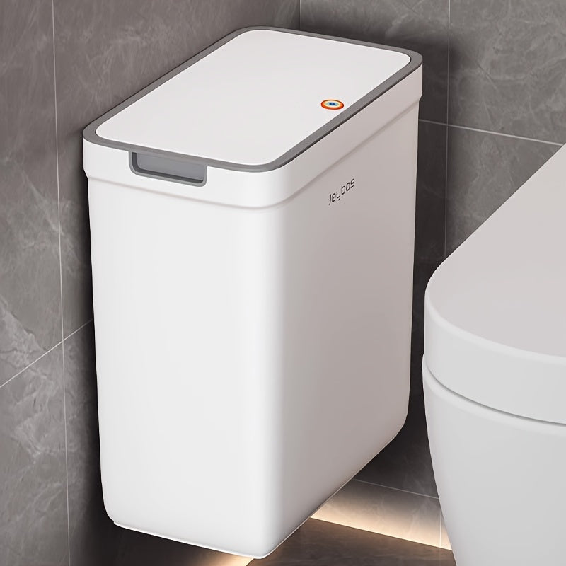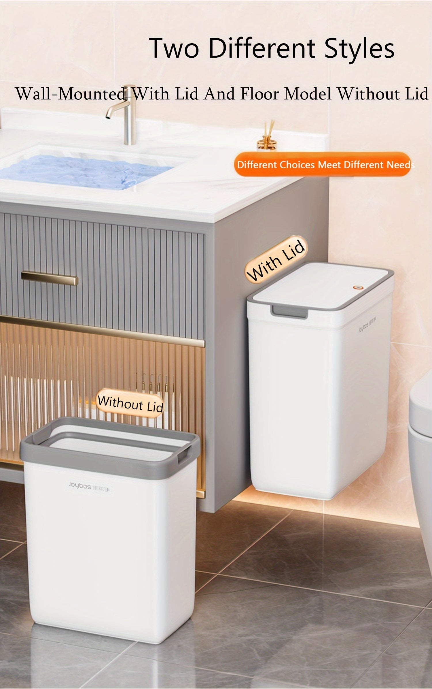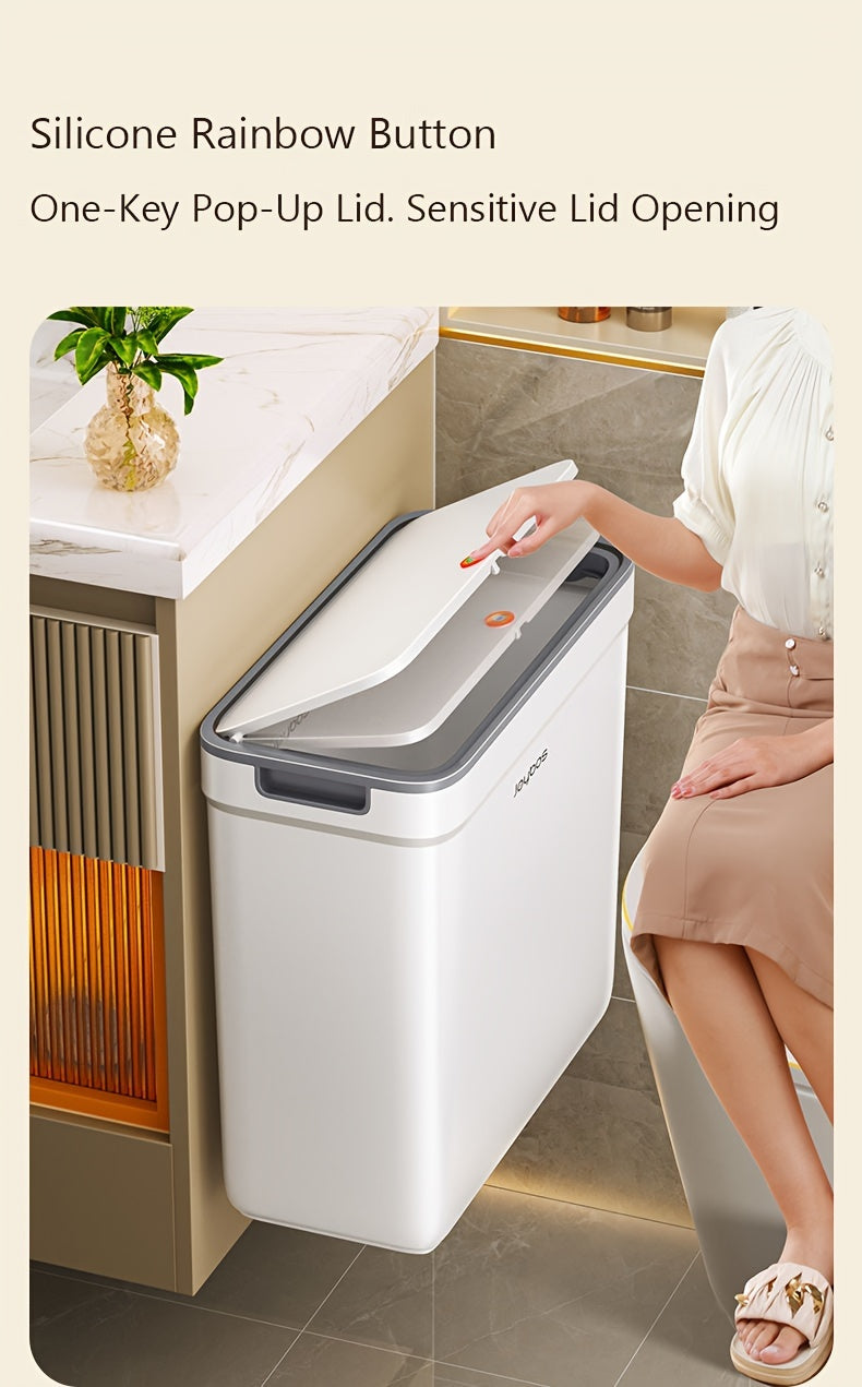 1pc Rectangle Plastic Trash Can with Press-Top Lid - Odor Sealing, Versatile Wall-Mounted & Floor-Standing, Space-Saving Design for Kitchen, Bathroom & Office - Polished Finish, Manual Operation