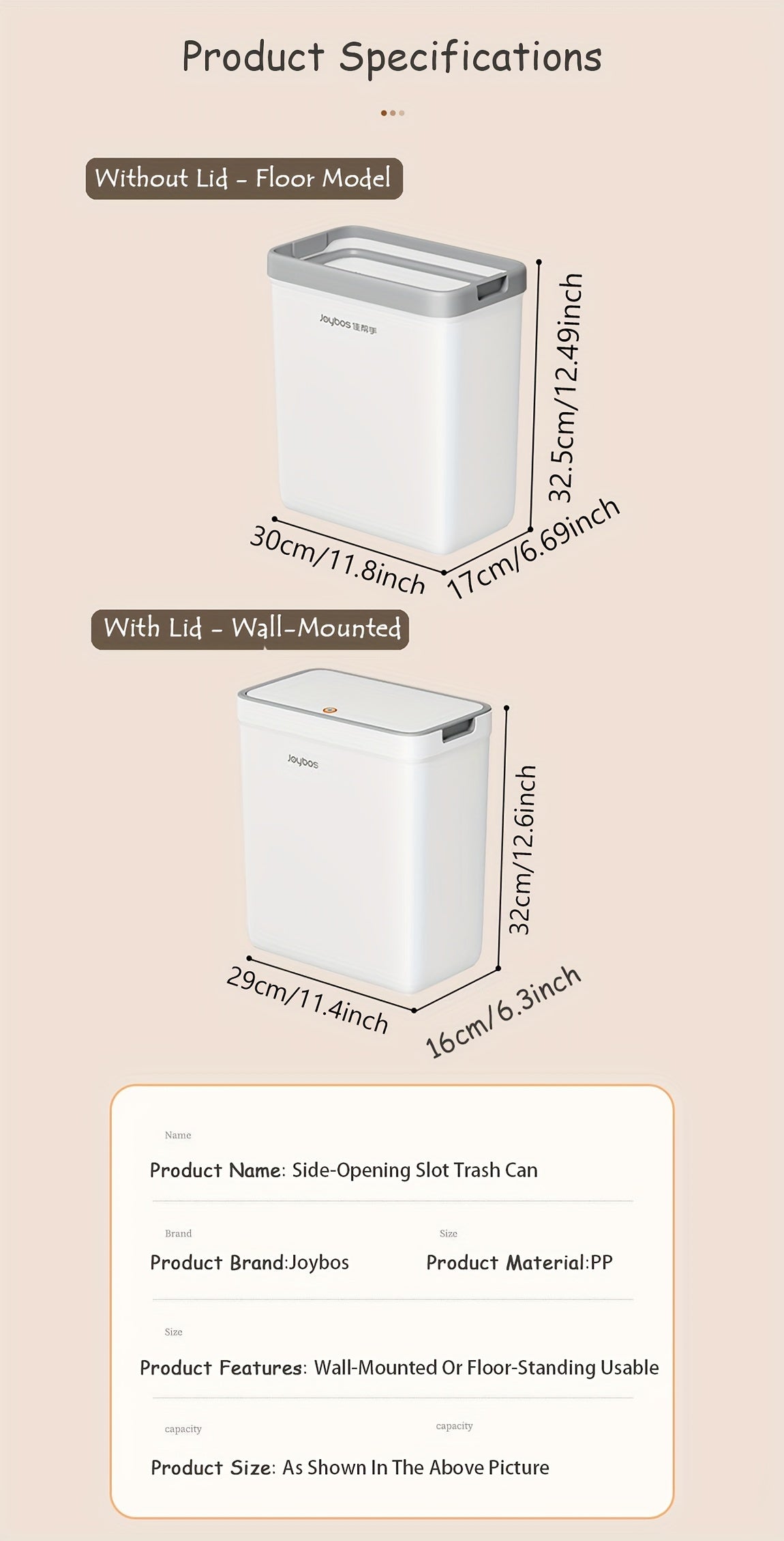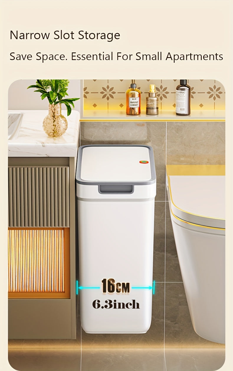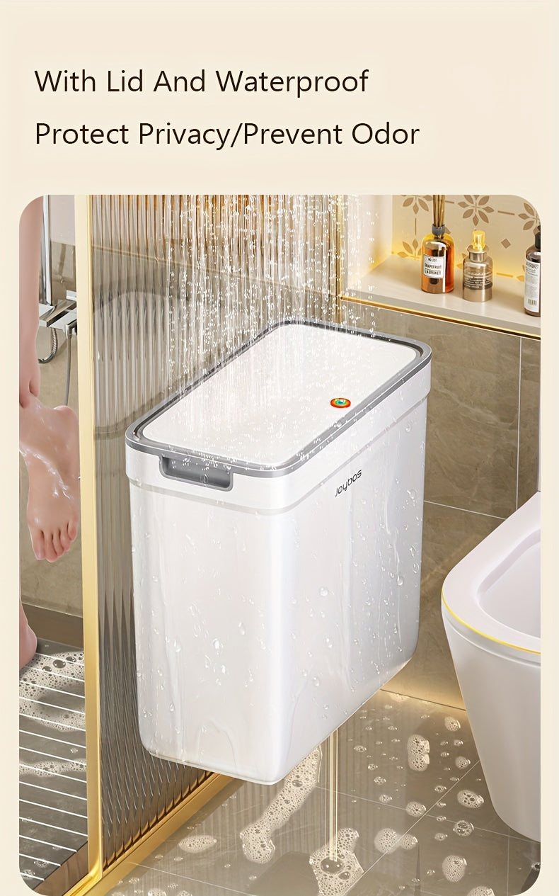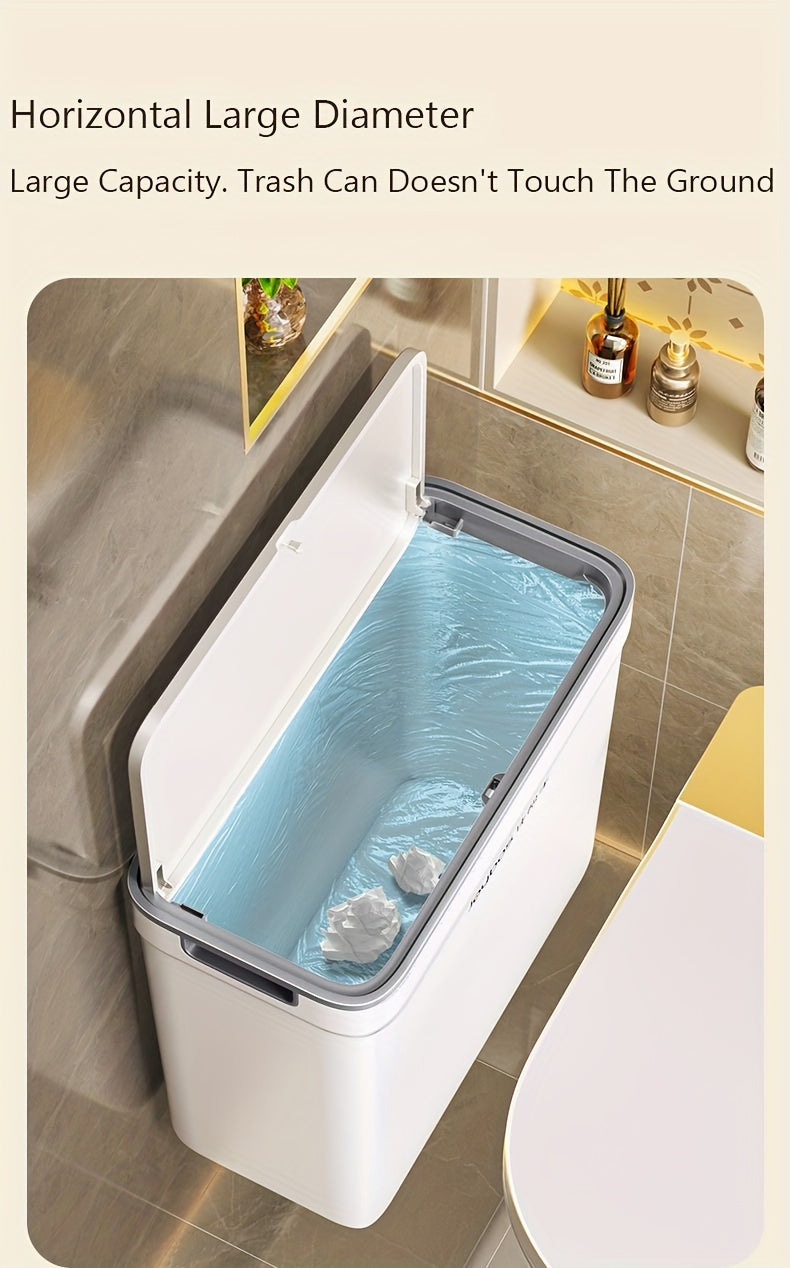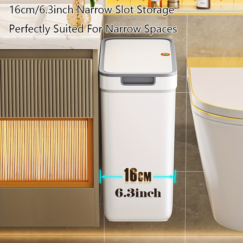 1pc Rectangle Plastic Trash Can with Press-Top Lid - Odor Sealing, Versatile Wall-Mounted & Floor-Standing, Space-Saving Design for Kitchen, Bathroom & Office - Polished Finish, Manual Operation