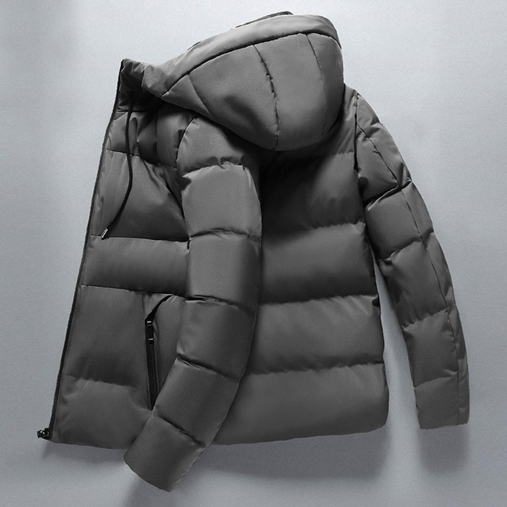 Men Jacket Cotton Padded Long Sleeve Solid Color Fluffy Filling Zipper Coldproof Autumn Winter Hooded Windbreaker for Working