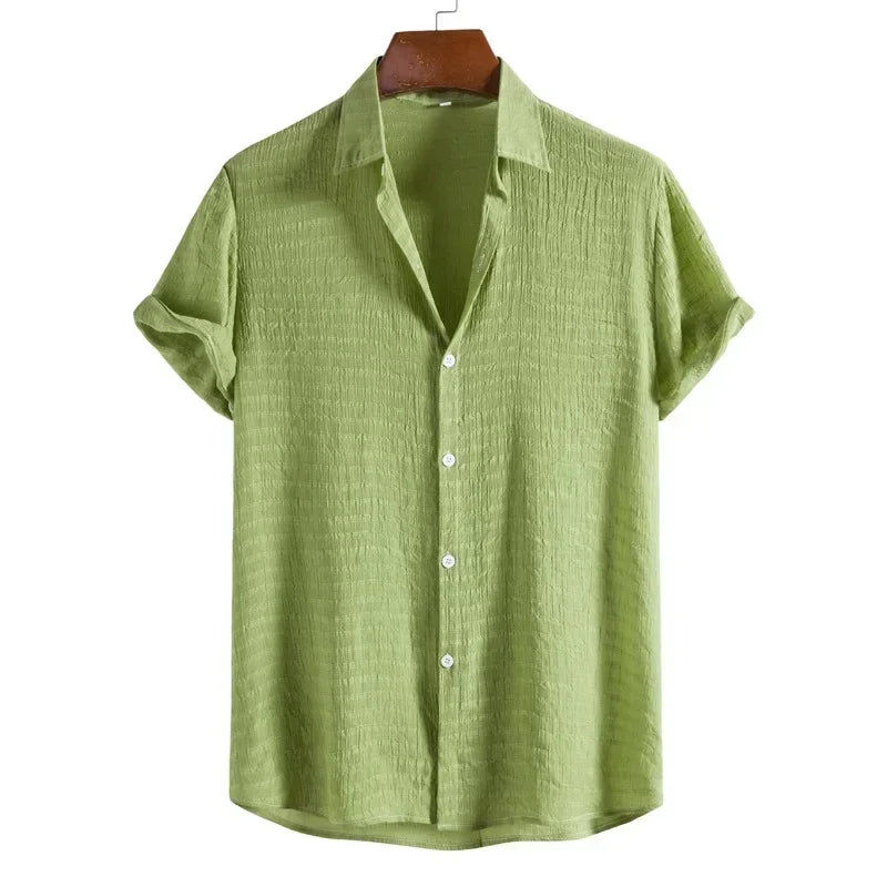 2024 New Men's Fashion Trend Solid Color Short Sleeve Shirts Casual Lapel Men's Clothing