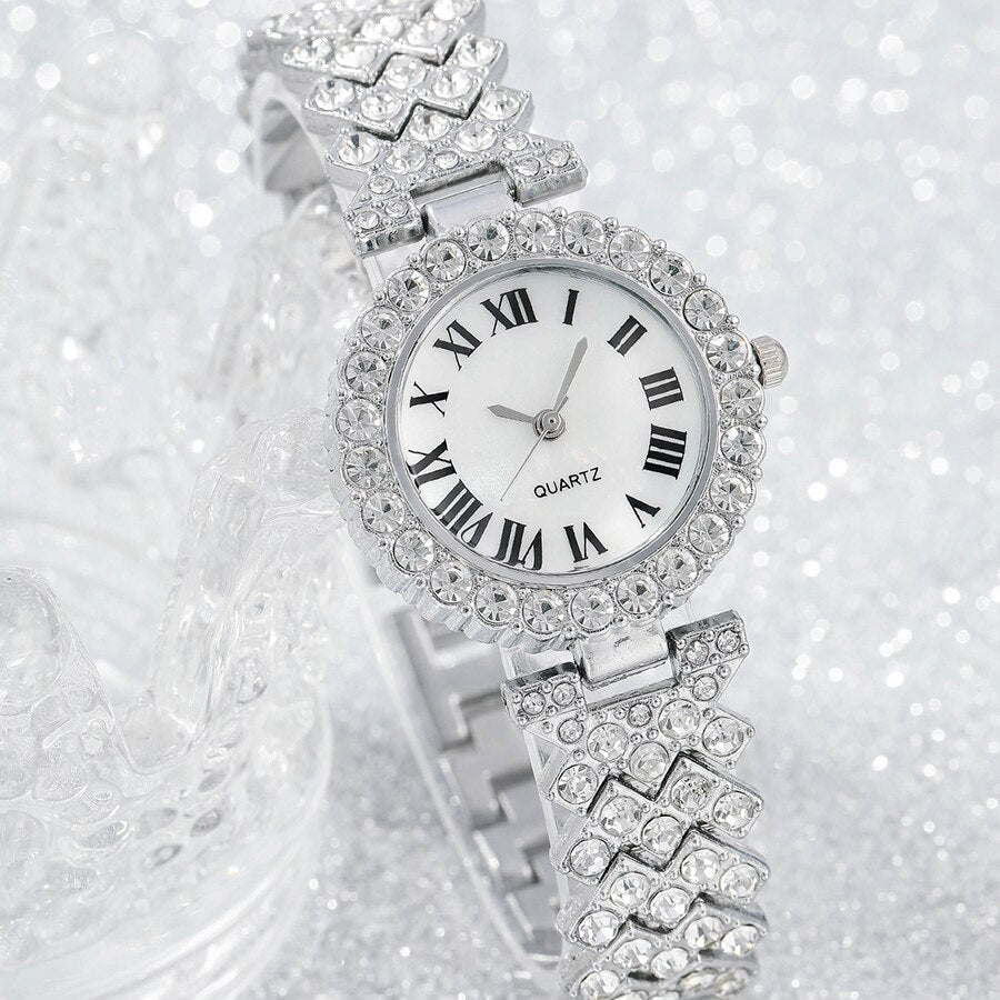 Elevate your accessory game with this 6pc Dainty Quartz Watch and Heart Jewelry Set designed exclusively for women. These elegant timepieces and matching heart-themed jewelry pieces offer a touch of sophistication and romance to your ensemble. With this set, you can effortlessly coordinate your style for various occasions, adding a hint of glamour to your look.