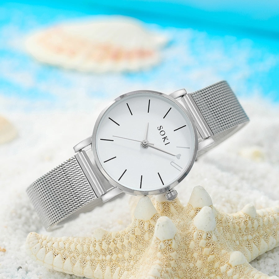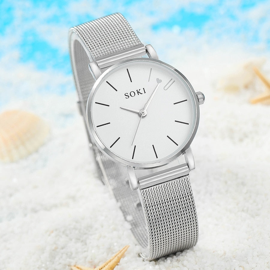 Upgrade your accessories collection with this 6pc Simple Silver Quartz Watch and Bracelet Set for women. These elegant timepieces and coordinating bracelets offer a clean and versatile design, adding a touch of timeless sophistication to your ensemble. With this set, you can effortlessly enhance your style for various occasions, showcasing simplicity and elegance in every detail.