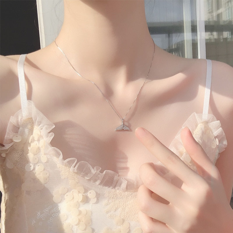 925 Sterling Silver Dolphin tail Necklace For Fashion Women