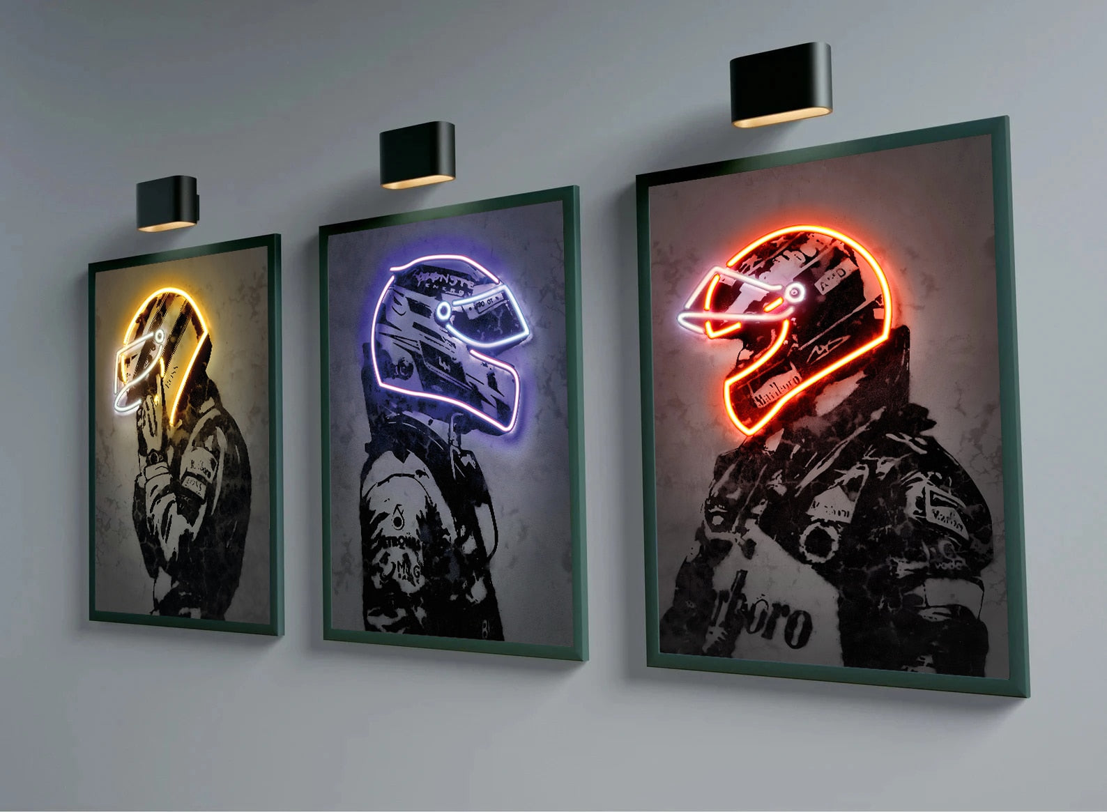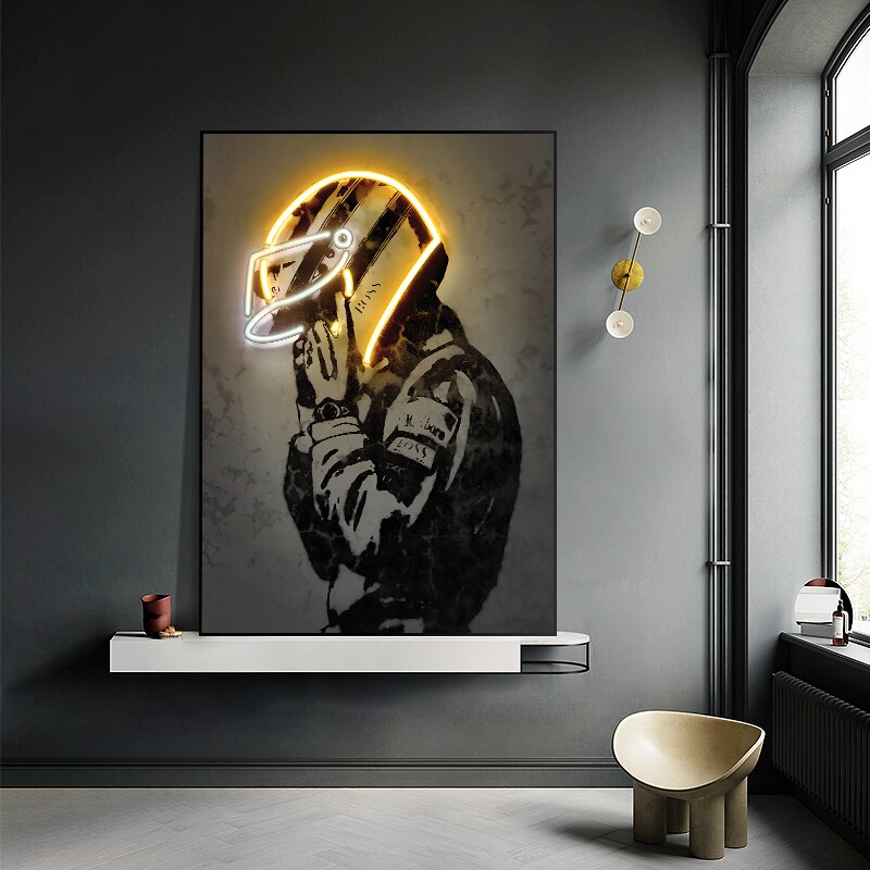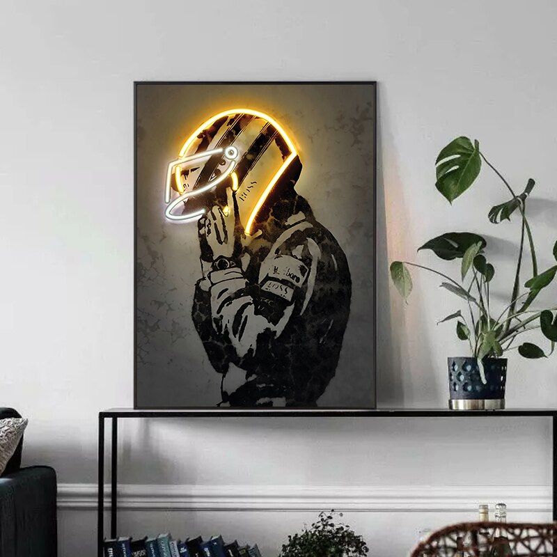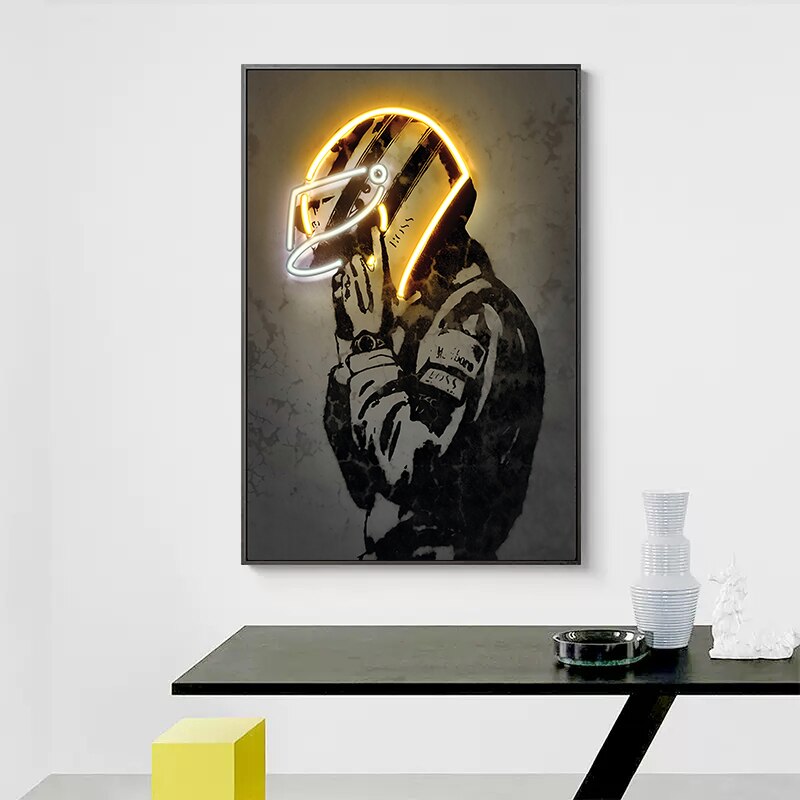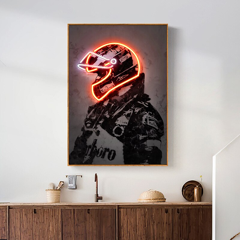 Abstract Formula 1 Car Driver Hamilton Neon Helmet Poster