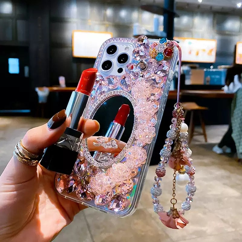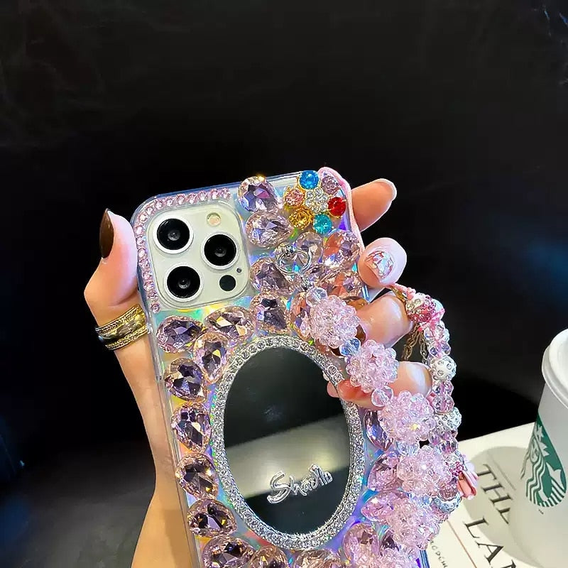 Bling Diamond Bead Chain Mirror Strap Phone Case ver