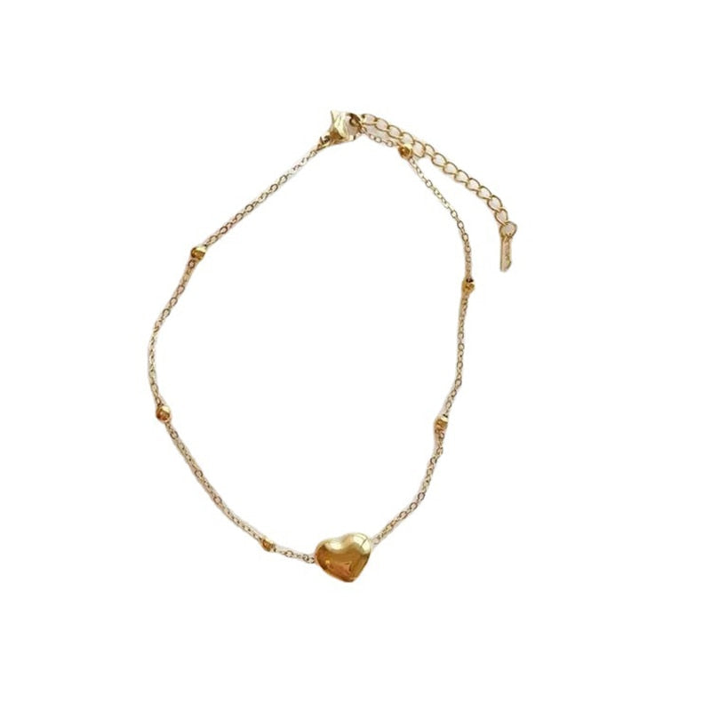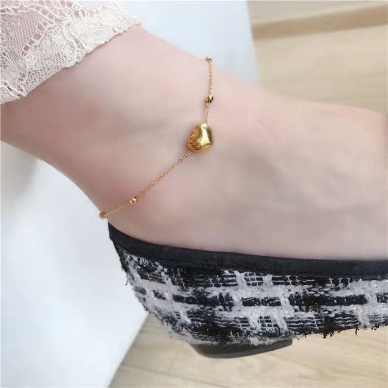 Classic Heart Gold Color Stainless Steel Anklets For Woman