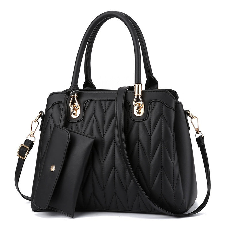 Embroidered Diamond Pattern Fashionable Handbag With Large Capacity