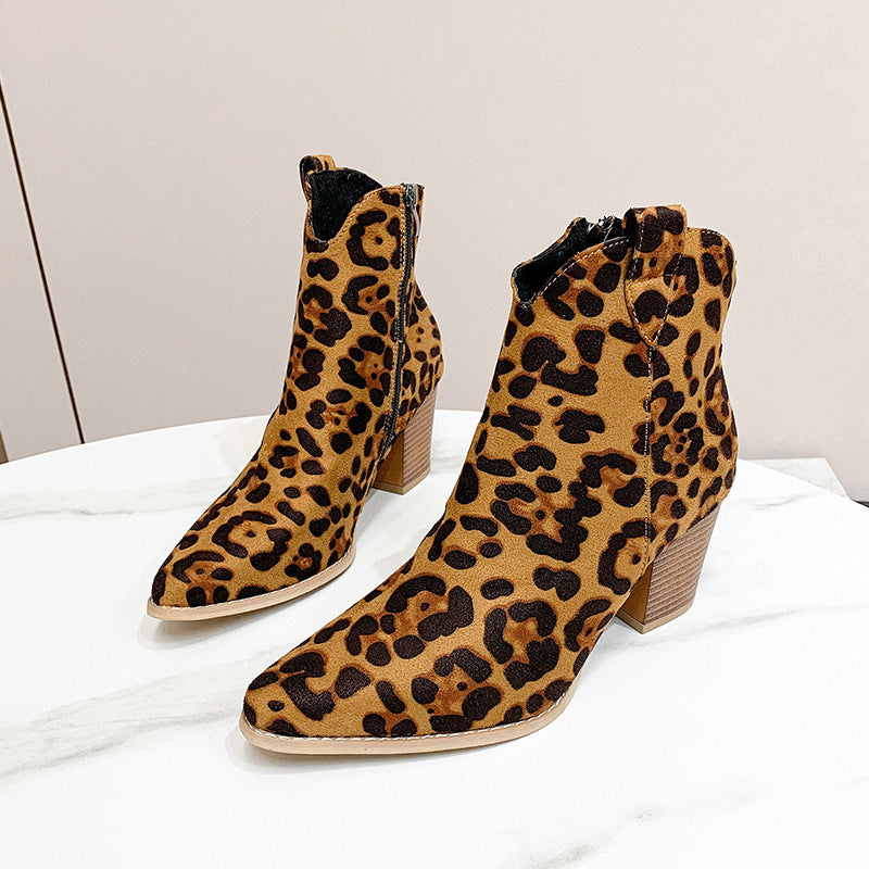 European And American Flat Leopard Print Pointed-toe Side Zip Women's Casual Pumps