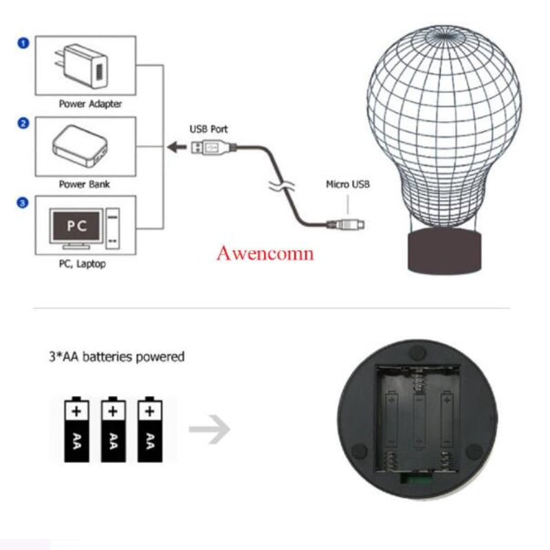 Power supply: By connecting USB interface or using 3*AA batteries(not included)