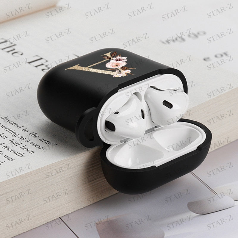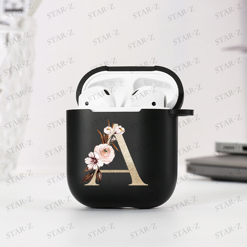Gold Letter A Z Black Headphone Case for Apple Airpods Pro 2 1 3