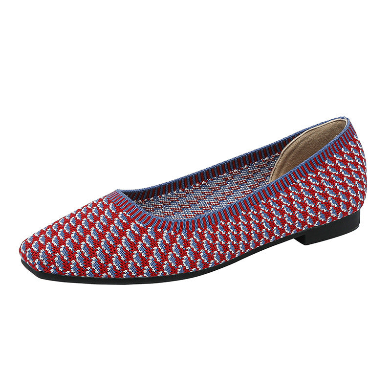 Gold Silk Color Matching Pointed Toe Shallow Mouth Square Toe Flat Shoes