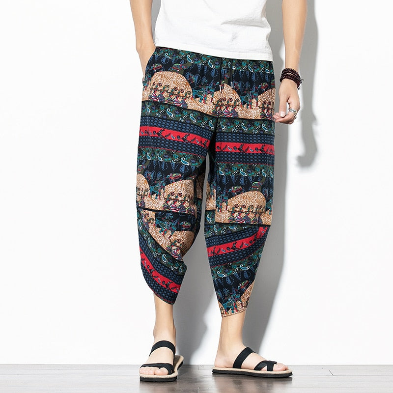 Harajuku calf-length casual men's pants are trousers designed in a style influenced by Harajuku fashion, often characterized by its eclectic and vibrant aesthetics. These pants typically reach the calf area, offering a unique and trendy look. Harajuku fashion draws inspiration from Japanese street style and often incorporates bold colors, patterns, and unconventional designs. Calf-length casual men's pants in a Harajuku style provide an opportunity for individuals to express their individuality and embrace a fashion-forward and creative approach to clothing.