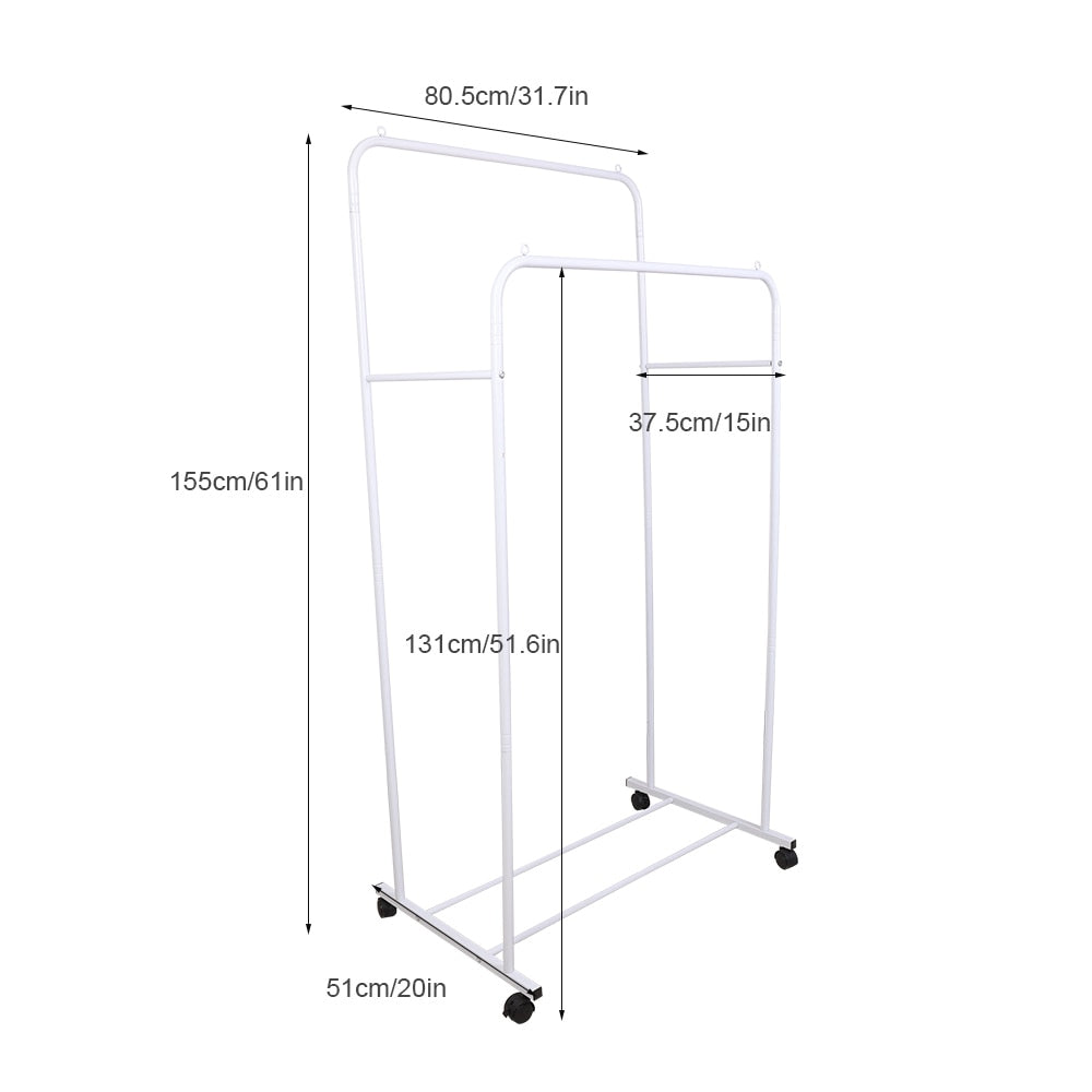 Heavy Duty Clothes Rack Garment Rail Rolling Stand Two Top Rod & Lower Storage