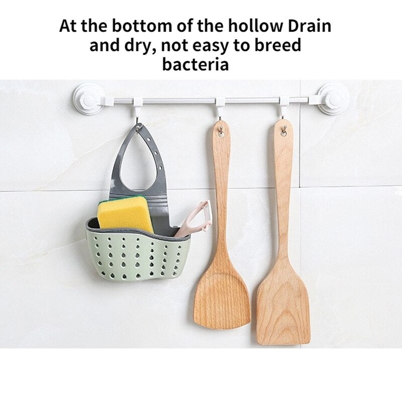 -Suitable for all sinks-keep your cleaning in order! This space-saving sponge rack is suitable for standard bowl-shaped sponges and is equipped with an adjustable shoulder strap for easy suspension and installation on sink taps of any size.