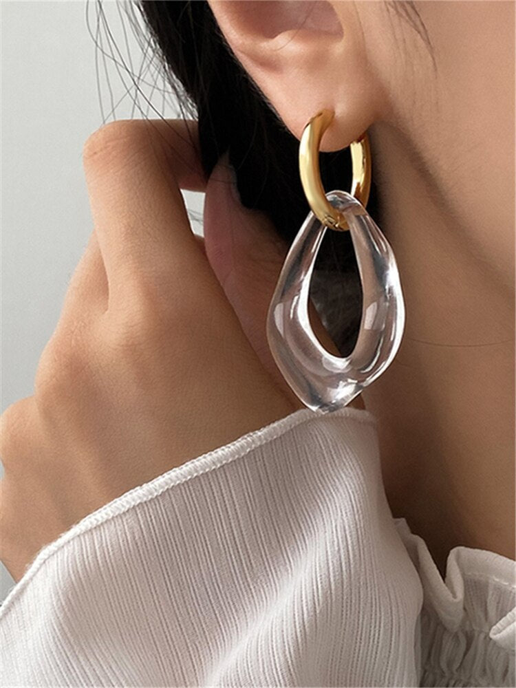 Bohemian clear acrylic irregular geometry earrings stainless Steel Earrings 2021 Accessories Jewelry gift free