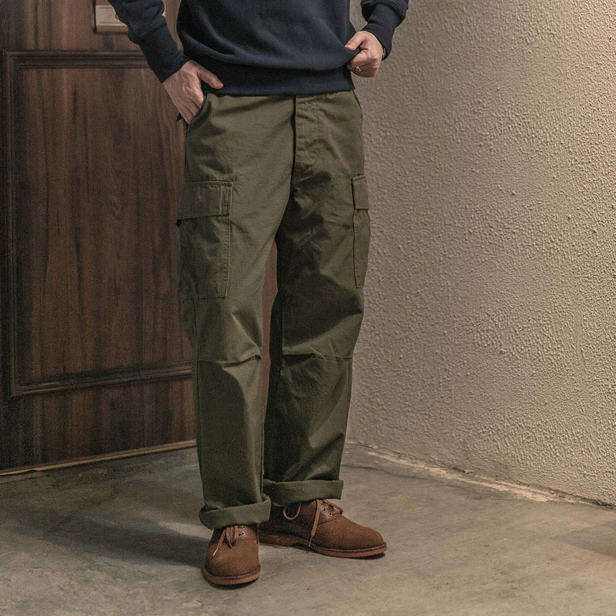 Men's cargo pants with a military style are trousers inspired by military uniforms, often featuring practical and functional design elements. These pants typically have multiple cargo pockets on the thighs and knees, providing additional storage for tools and essentials. The military style may also include reinforced stitching, durable fabrics, and a utilitarian appearance. Cargo pants with a military style offer both a fashionable and functional option, appealing to those who appreciate the rugged and versatile look associated with military-inspired fashion while benefiting from the extra storage these pants provide.