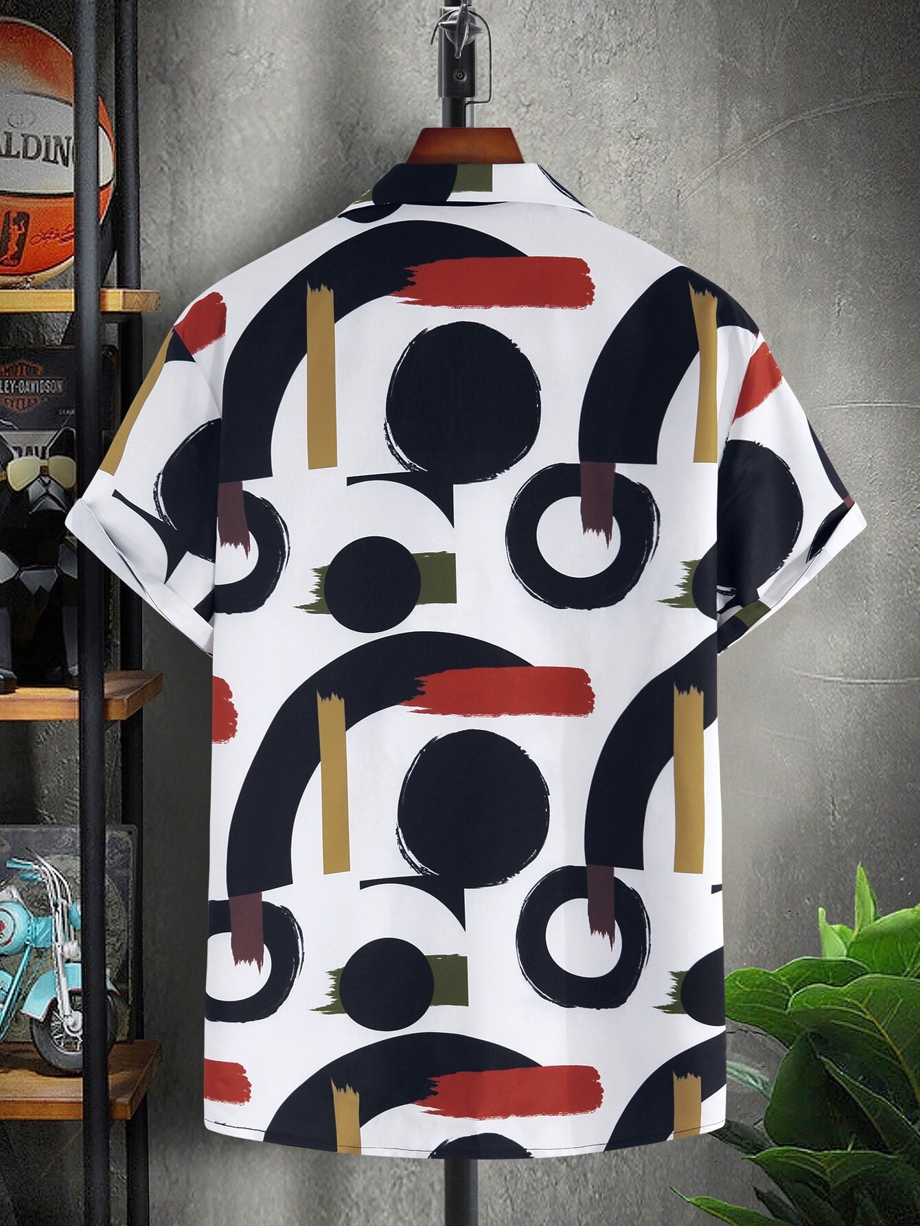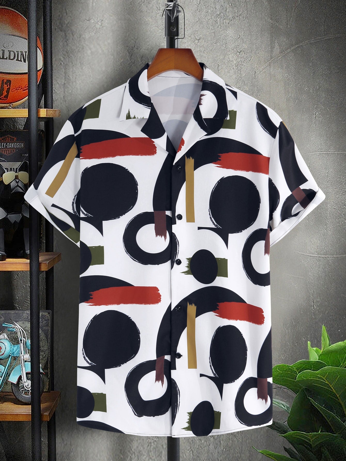 The Men's Random Circle and Brush Print Shirt is a unique fashion statement, combining a distinctive print with modern styling. This shirt adds a touch of creativity and individuality to any man's wardrobe, making it a standout choice for those who seek a bold and artistic look.