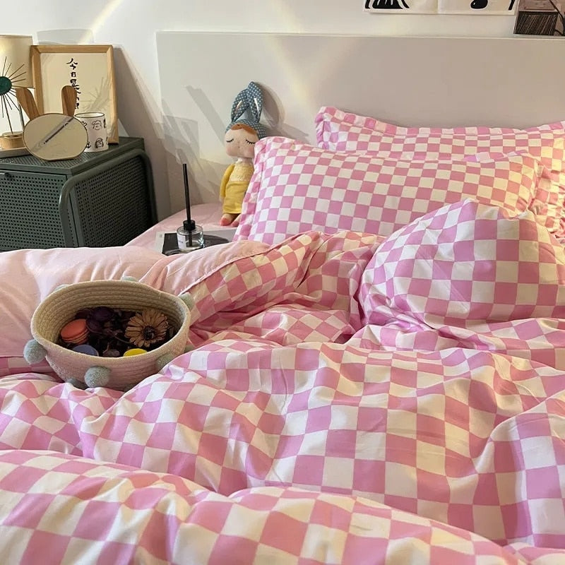 Nordic checkerboard duvet cover sets are bedding collections that feature a design inspired by the Nordic style, characterized by its clean lines, simplicity, and functionality. The checkerboard pattern, often found in these sets, adds a geometric and visually appealing element. These sets typically include a duvet cover and matching pillowcases, aiming to bring a touch of Scandinavian-inspired decor to the bedroom.