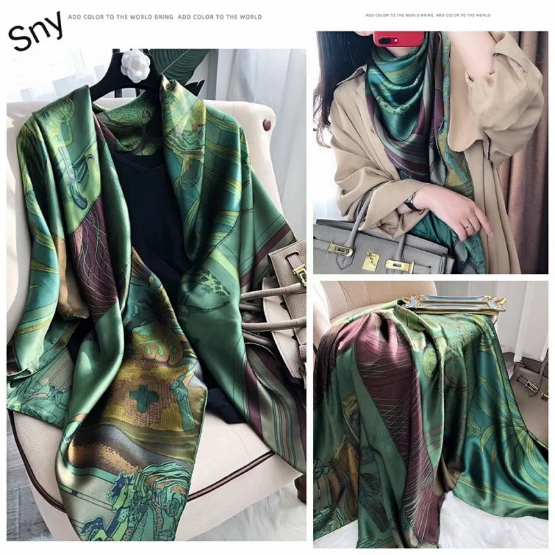 Spring 2022 New Large Kerchief 110 Elegant Silk Scarf Versatile Fashion Beach Scarf Silk Scarf Shawl Wholesale Fashion