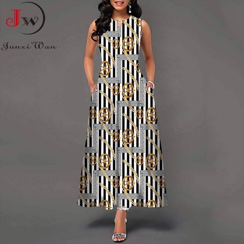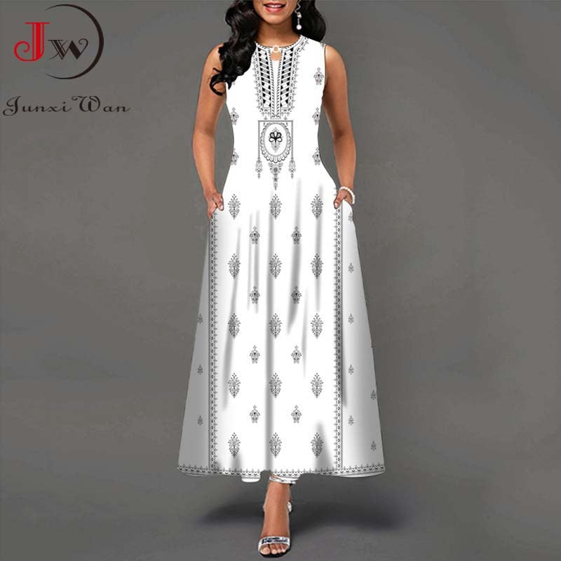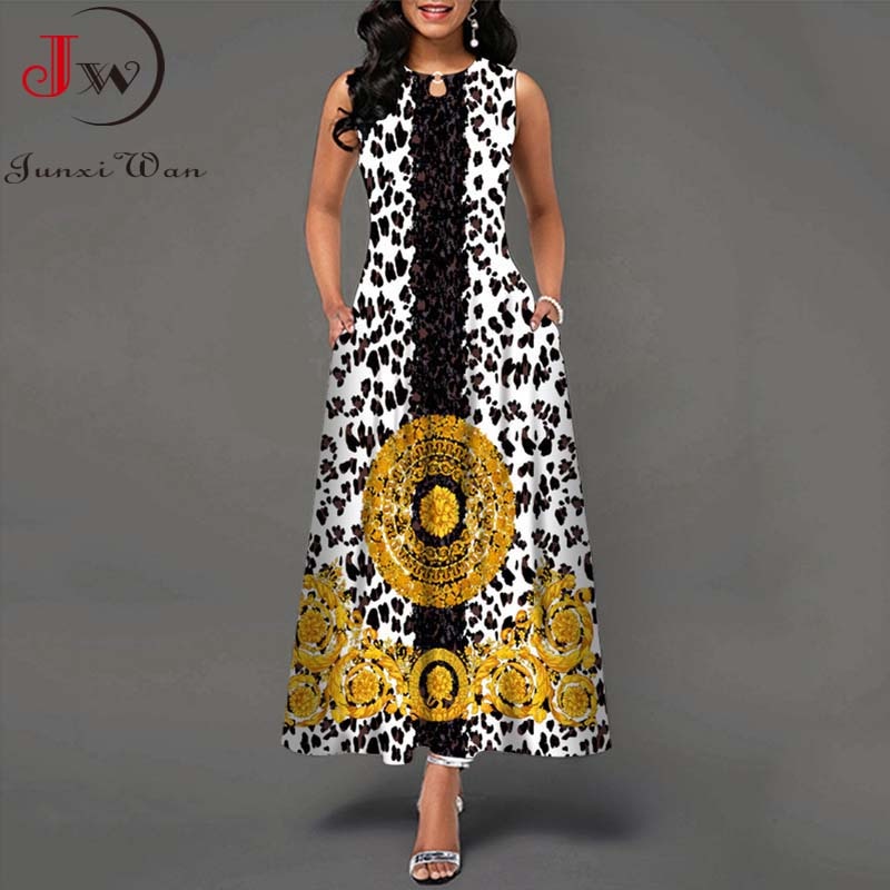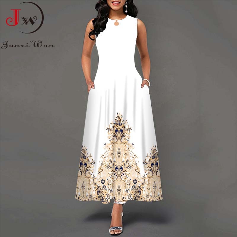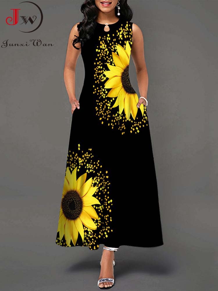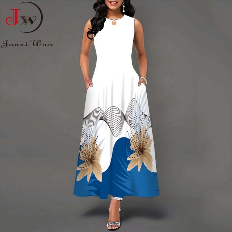 Summer Boho Women Elegant Long Dresses Sleeveless Floral Print