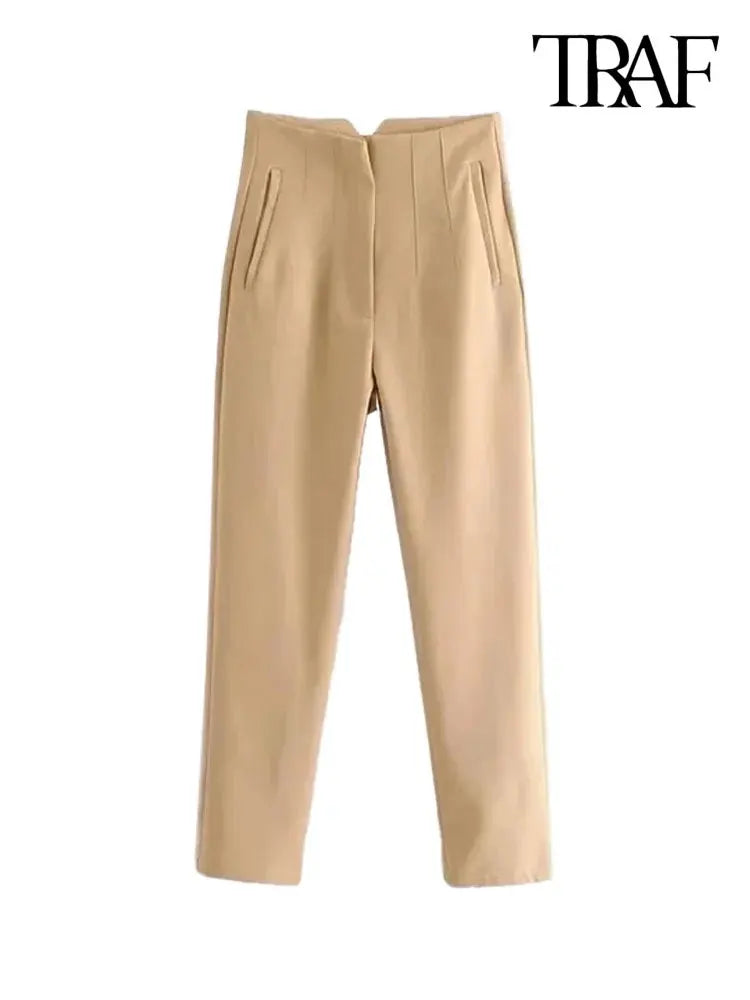 TRAF Women Fashion With Pockets Casual Basic Solid Pants Vintage