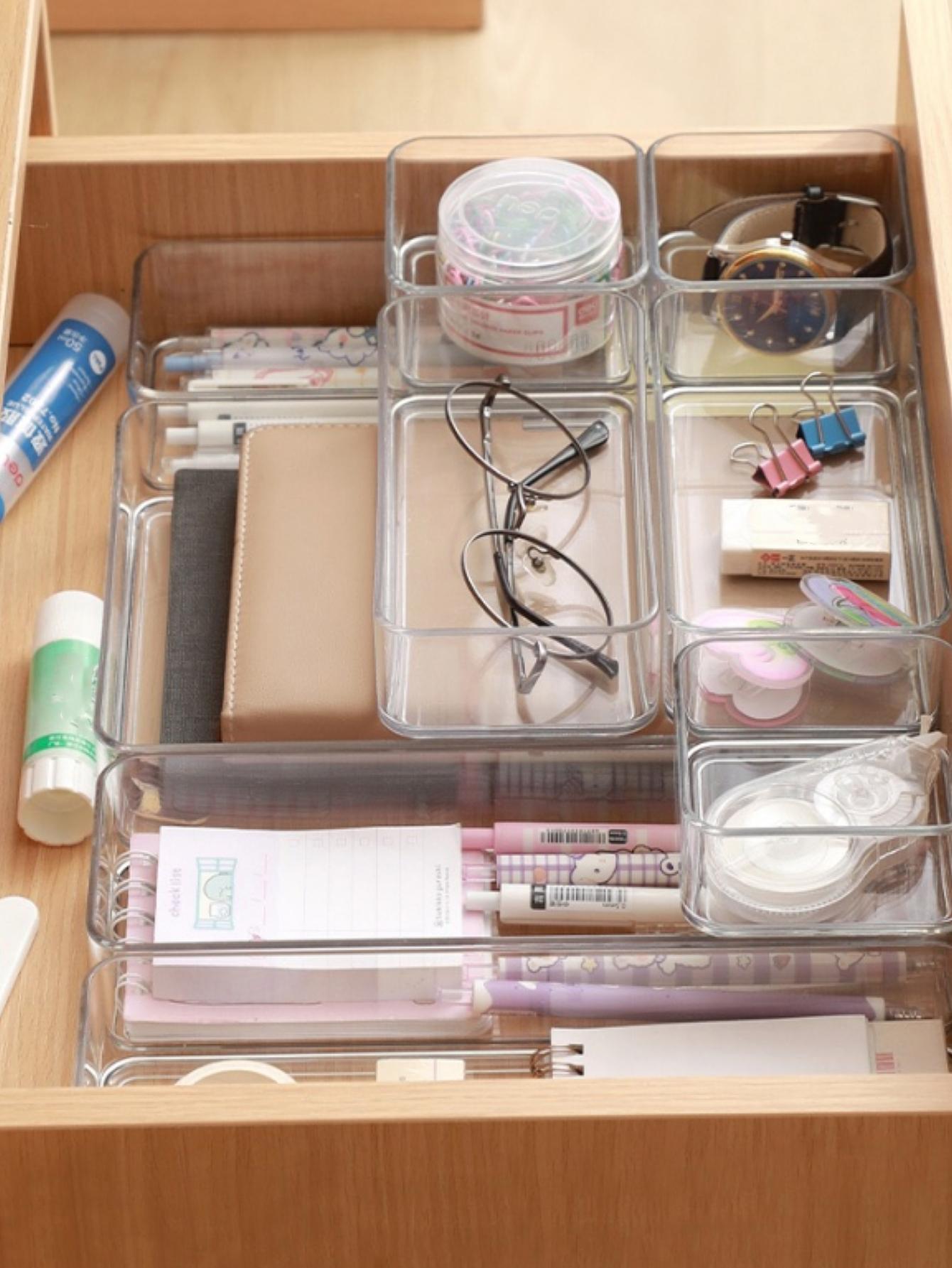 Keep your desk clutter-free and organized with our Transparent Desktop Stationery Storage Box. This clear and sleek box is perfect for storing stationery, office supplies, and small items, allowing you to see and access your essentials with ease while maintaining a tidy workspace.