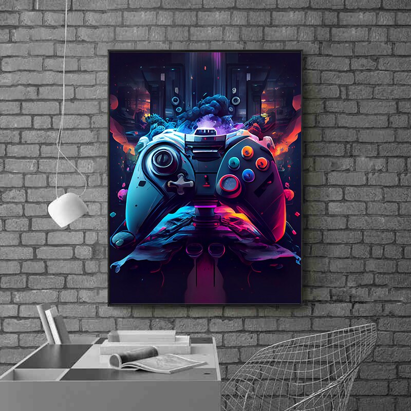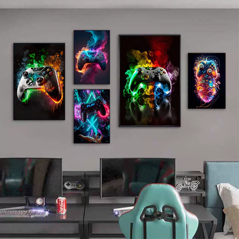 Product Name:Video Game PS Controller Headphone Poster Canvas Painting Watercolor Abstract Wall Art For Gamer Room Home Decoration No LED