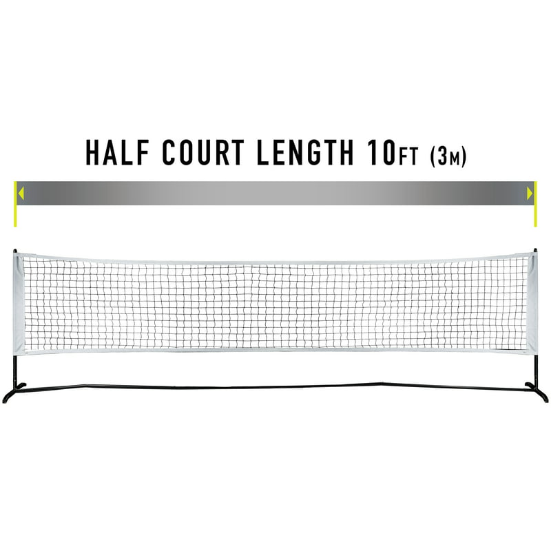 The Half Court Net is the net designed to fit in smaller spaces but at the same time giving you all the tools needed to learn the sport for the first time or to perfect already mastered skills. The package includes (1) 10 foot wide net (10ft x 3ft) made with sturdy steel pole construction. It`s the perfect set to get you started in the sport, can be easily packed up and transported and is easy to assemble! Multi-use for a quick pickleball or mini tennis !