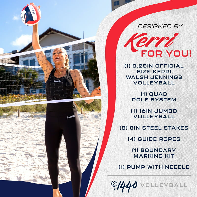 - DOUBLE THE FUN is bound to happen when 2 volleyballs are included! (1) Kerri Walsh Jennings volleyball is included as well as a jumbo 16in fun sized volleyball. Take turns switching the ball up when new players enter the game to keep the fun going!