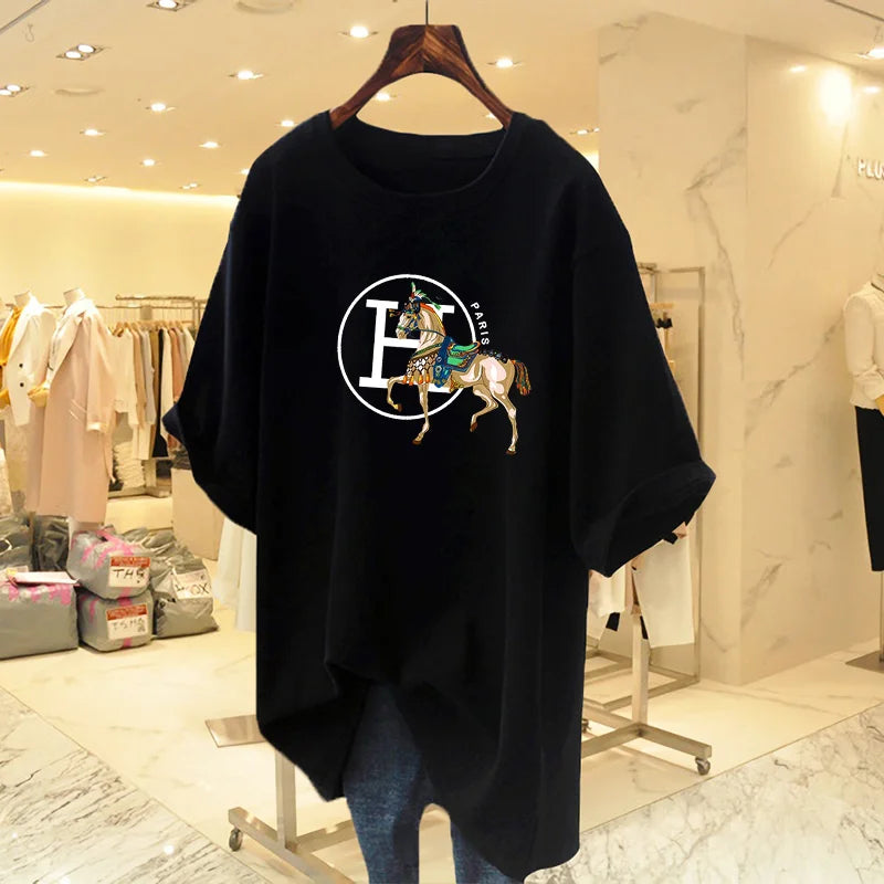 Women Clothing Animal Letter Printed Chic Loose T-shirt Summer