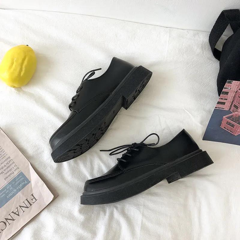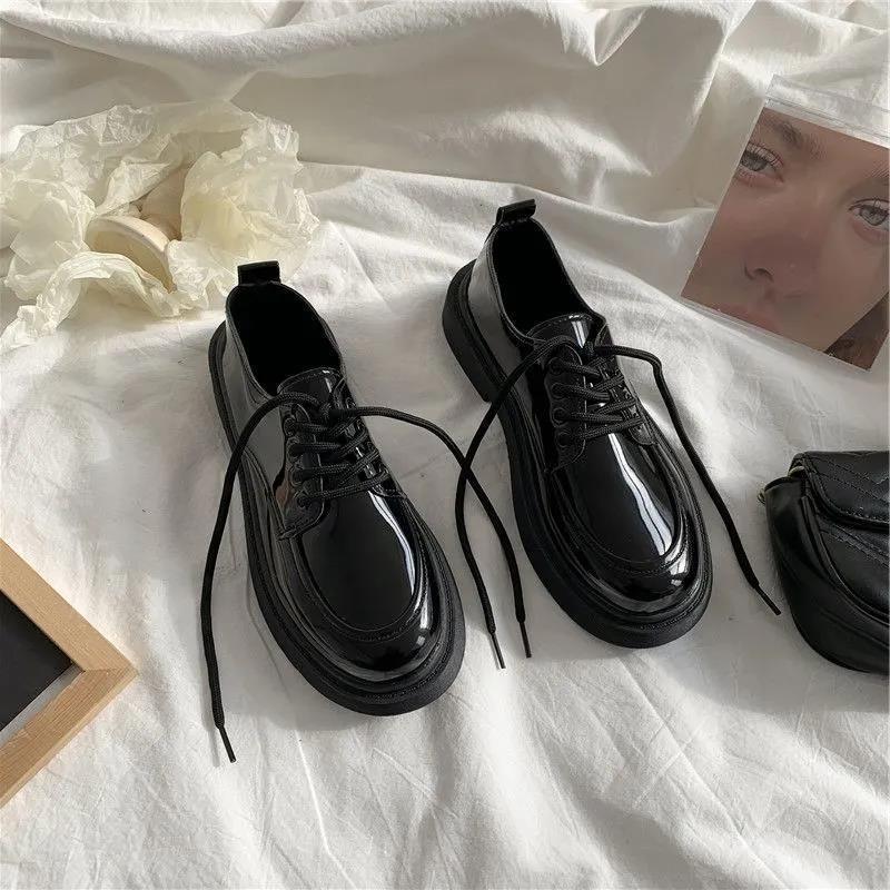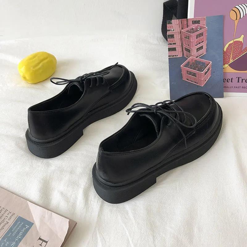 Women's Fashion All-match Round Head Lace-up Leather Shoes